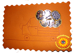 Карандашами нарисовали сюжет. У нас получились грузовичек, корзинка, курочка в гнезде. (мама рисует - рребенок раскрашивает)